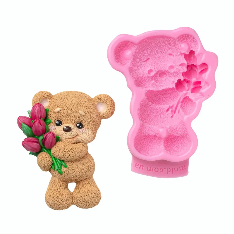 Силіконовий молд Ведмедик з тюльпанами 2д