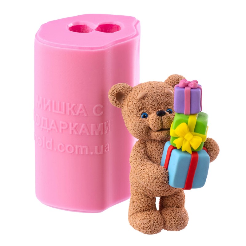 Силіконовий молд ведмедик з трьома подарунками